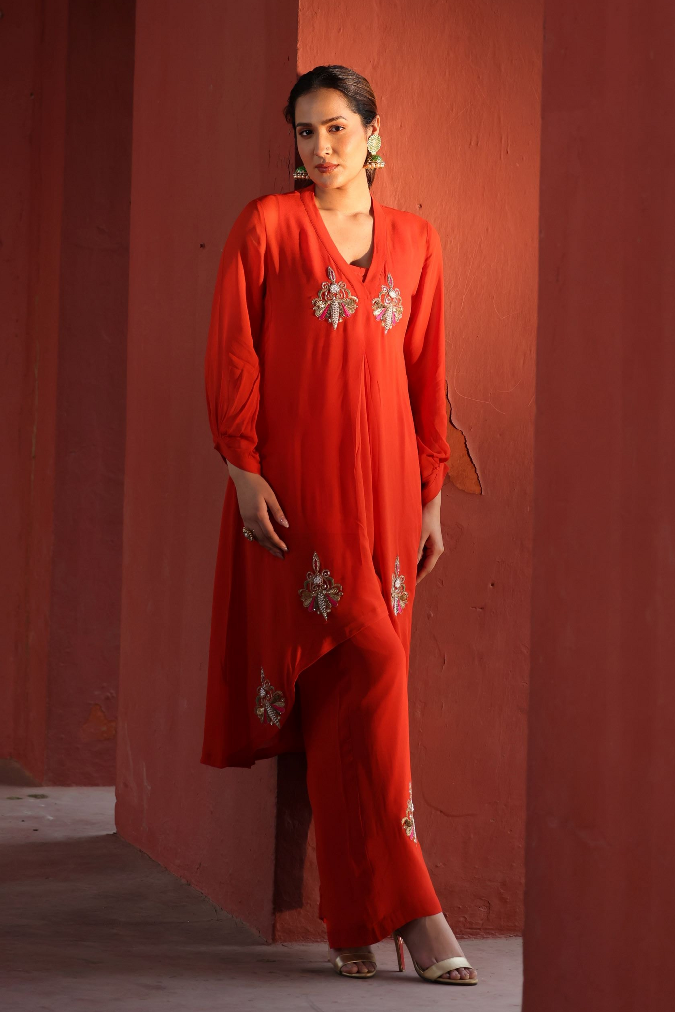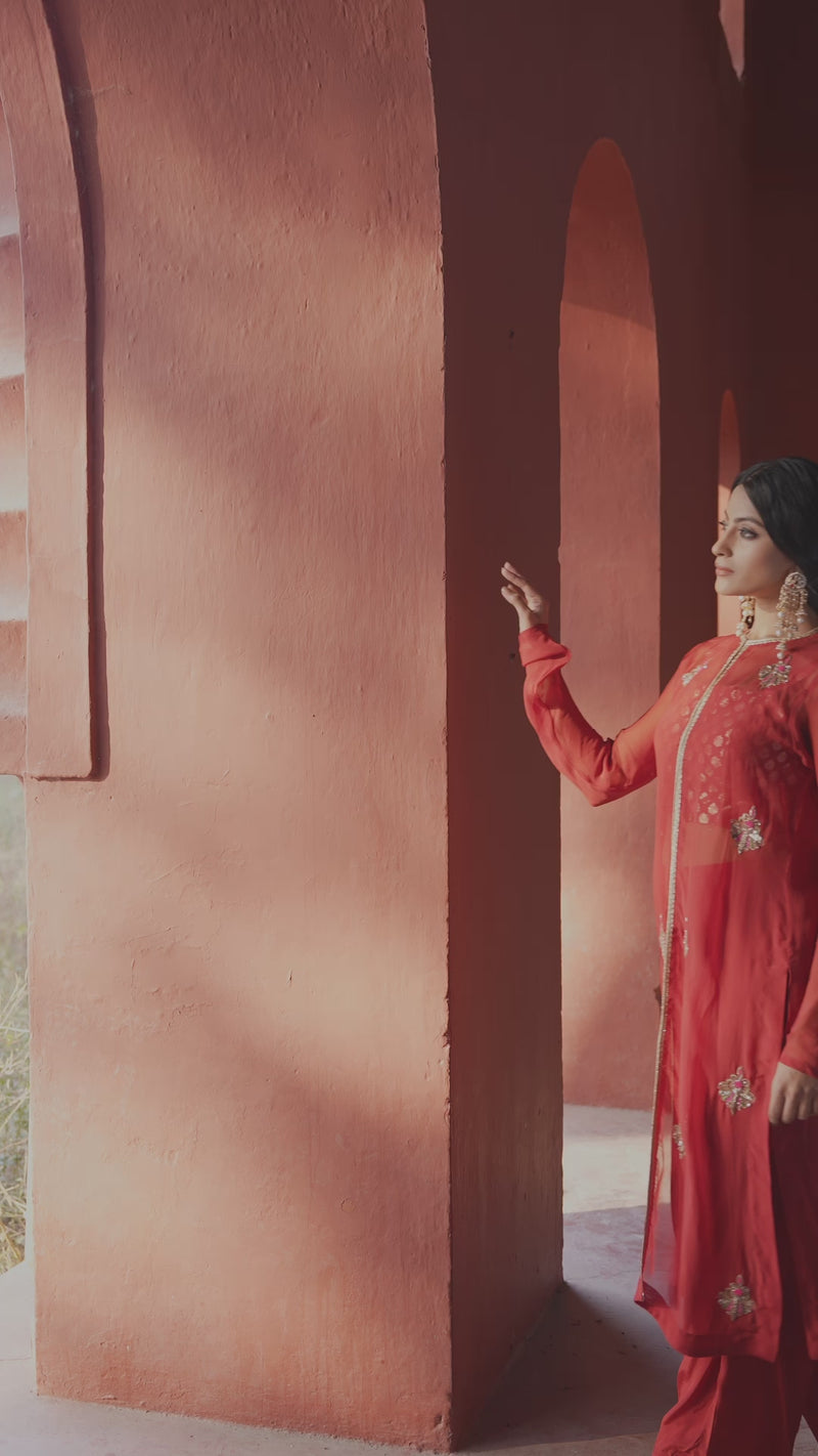RED & WINE OMBRE DYED COTTON SILK CO-ORD SET