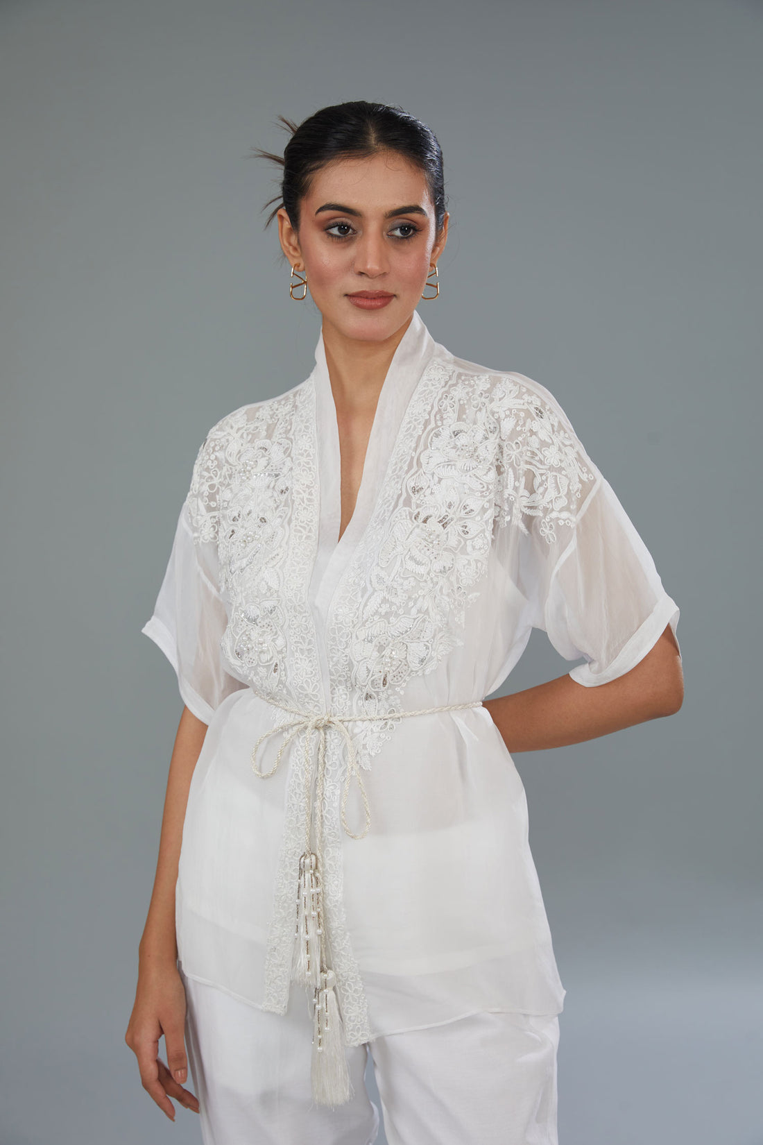 White Organza Silk Hand & Machine Embroidered Co-Ord Set