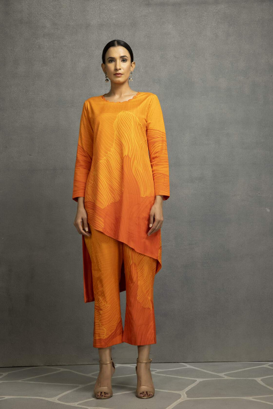 The orange and yellow digital printed co-ord set can add brightness and versatility to your...