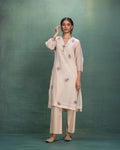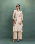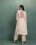 Beige Embroidery Cord Set with Organza Back and Hand Scalloping