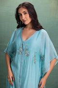 Blue Kaftan Dress with and Handcrafted Embellishment