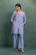 Elevate your style with this BLUE cord set, featuring rich dark-hued floral machine embroidery with a 3D hand-touch feel. Soft, elegant, and detailed — perfect for adding texture and charm to your look.