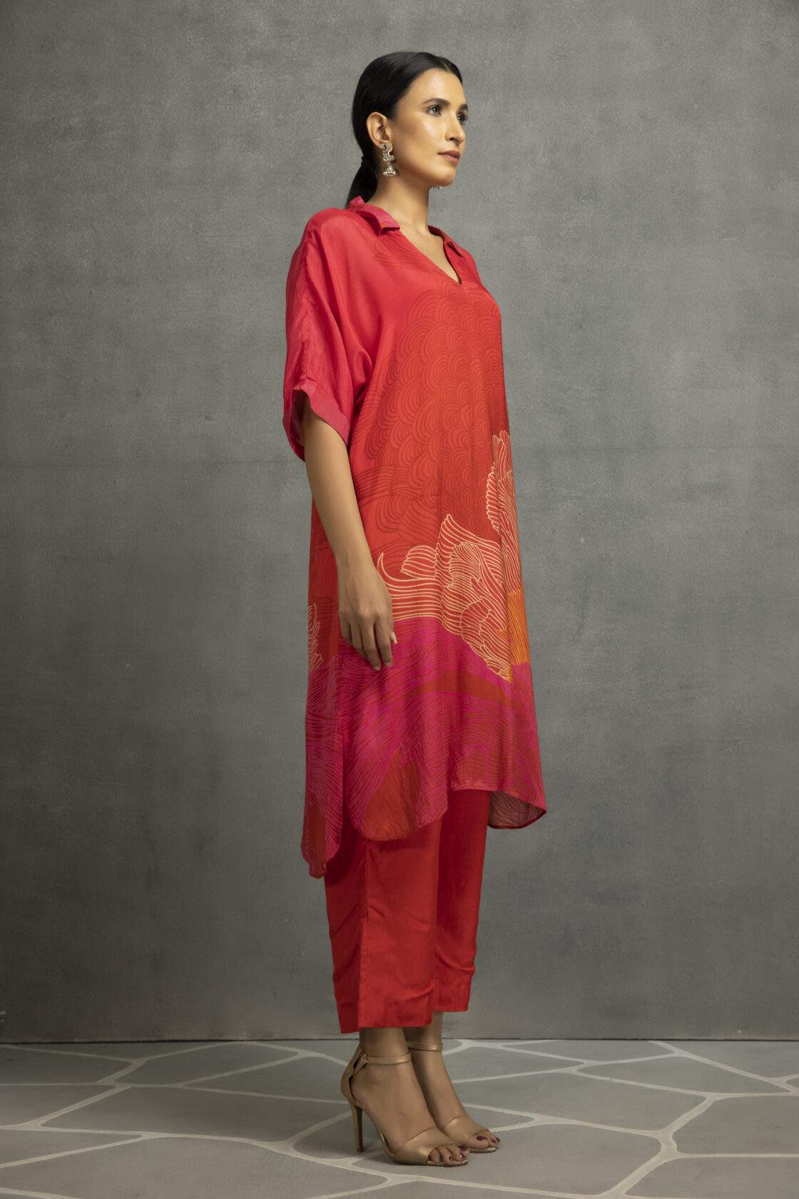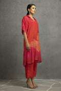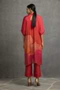 Dark Red and Pink printed long collar kurta in cotton silk base, it is best paired with matching pants.