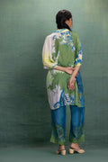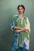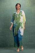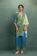 This unique set features an in-house geometric print in soothing green and blue hues, enhanced with 3D hand-touch detailing. A perfect mix of modern design and textured elegance.