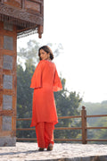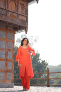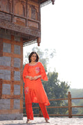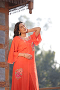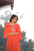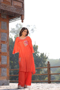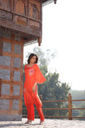 Orange FLORAL Embroidered Cord Set (2 piece)
