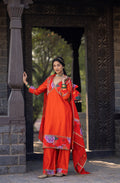 Orange Luxurious Chanderi Silk Suit (3 piece)
