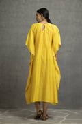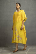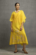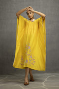 Yellow Story Telling Kaftan In Chanderi Base With Applique Work